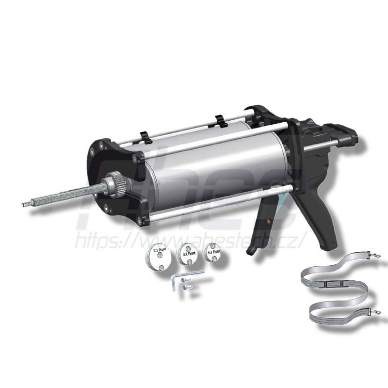 vybavena ručním pohonem a je ideální pro zpracování dvousložkových lepidel a tmelů. Tato pistole umožňuje přesné a rovnoměrné nanášení. Díky své robustní konstrukci a vysoce kvalitním komponentům je spolehlivým nástrojem pro profesionální aplikace v oblasti lepicí techniky. Lepidla a tmely se dávkují bez námahy a efektivně.