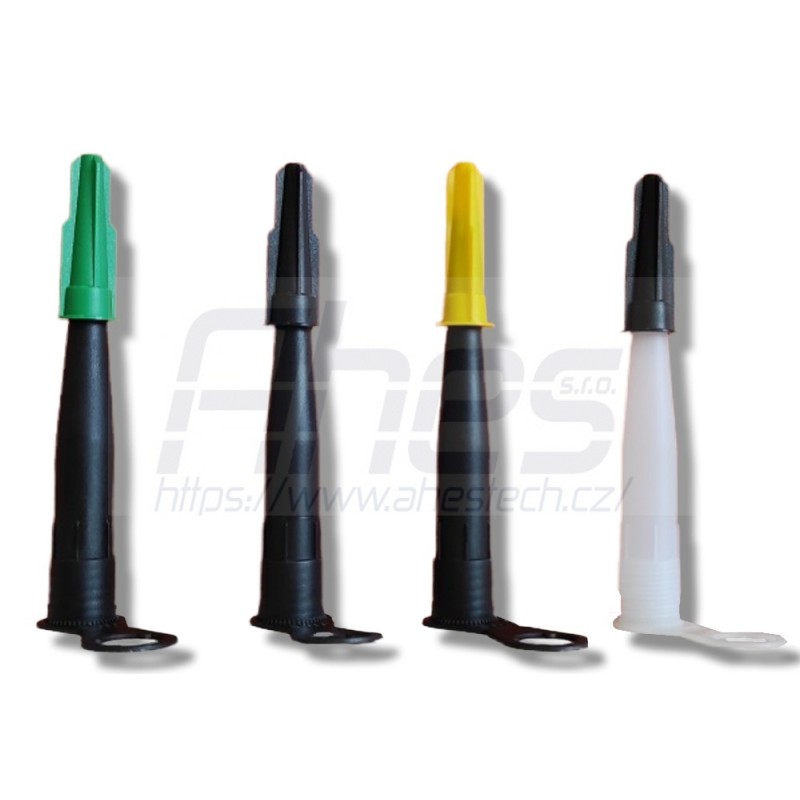 Standardní tryska na kartuše se závitem S15. Vhodné na běžné 1K kartuše se závitem S15 (např. Ritter nebo Fischbach). Jsou k dispozici v různých barevných kombinacích. Délka 120,5mm, otvor 3mm.